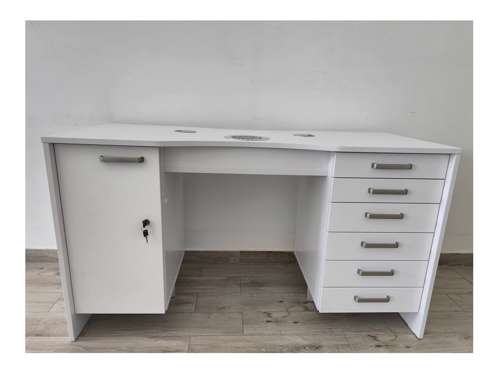 Manikérsky stôl BASIC Biely matný 6 šuplíkov napravo