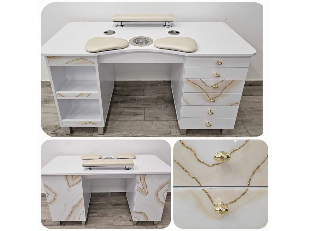 Dekor na strane zákazníka ako pri Luxury stole koženka + 2 zásuvky na prednej strane manikérky,