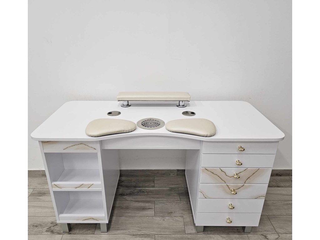Manikérsky stôl Epoxi ART Design Biely s profesionálnou odsávačkou prachu na nožičkách