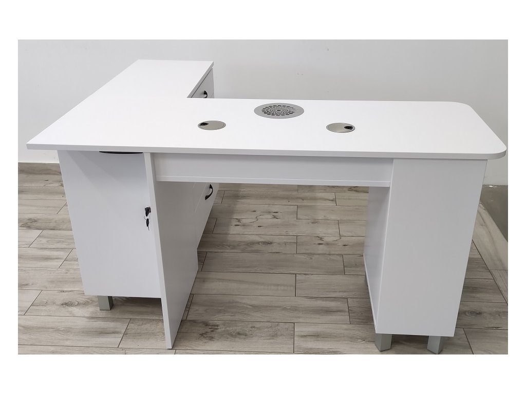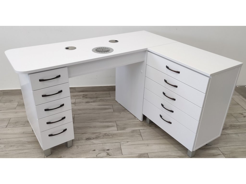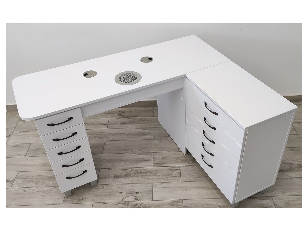 Manikérsky stôl Rohový Biely Pravý šuplíky v nohe
